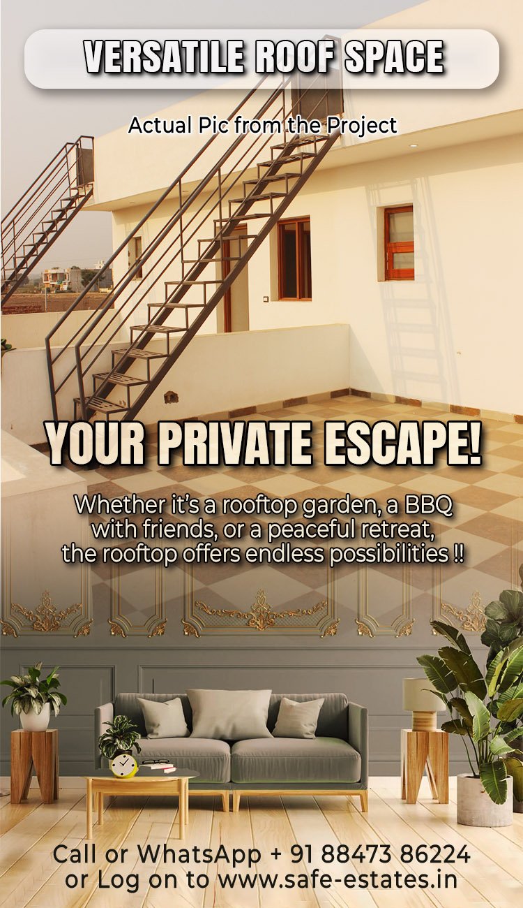 - Enjoy the comfort of spacious bedrooms with full-size cupboards and the elegance of well-designed washrooms. The expansive roof area offers additional space for outdoor activities and relaxation.